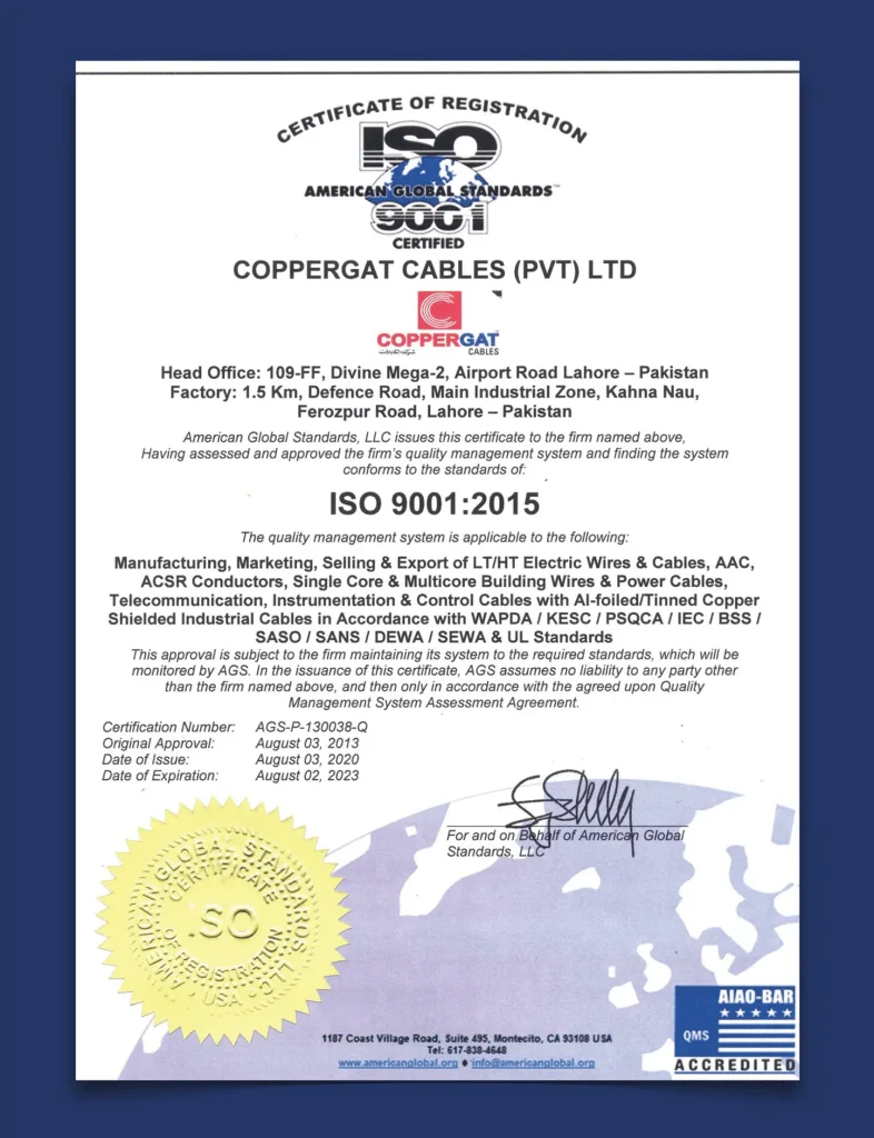I feel pleasure to express my belief that despite the high levels of inflation, Pakistan continues to achieve economic success and growth in this very challenging environment. The demand of infrastructure, urban development requirements and measures promised by the government towards improving rural economy as well as initiatives being taken by the government is ensuring financial inclusion at all levels will definitely generate sufficient investment and propel growth. COPPERGAT Cables Company a leading flagship brand in quality is well placed to benefit from the opportunities that our country and global market will keep offering. As a brand we stand for commitment, excellence, integrity and respect.